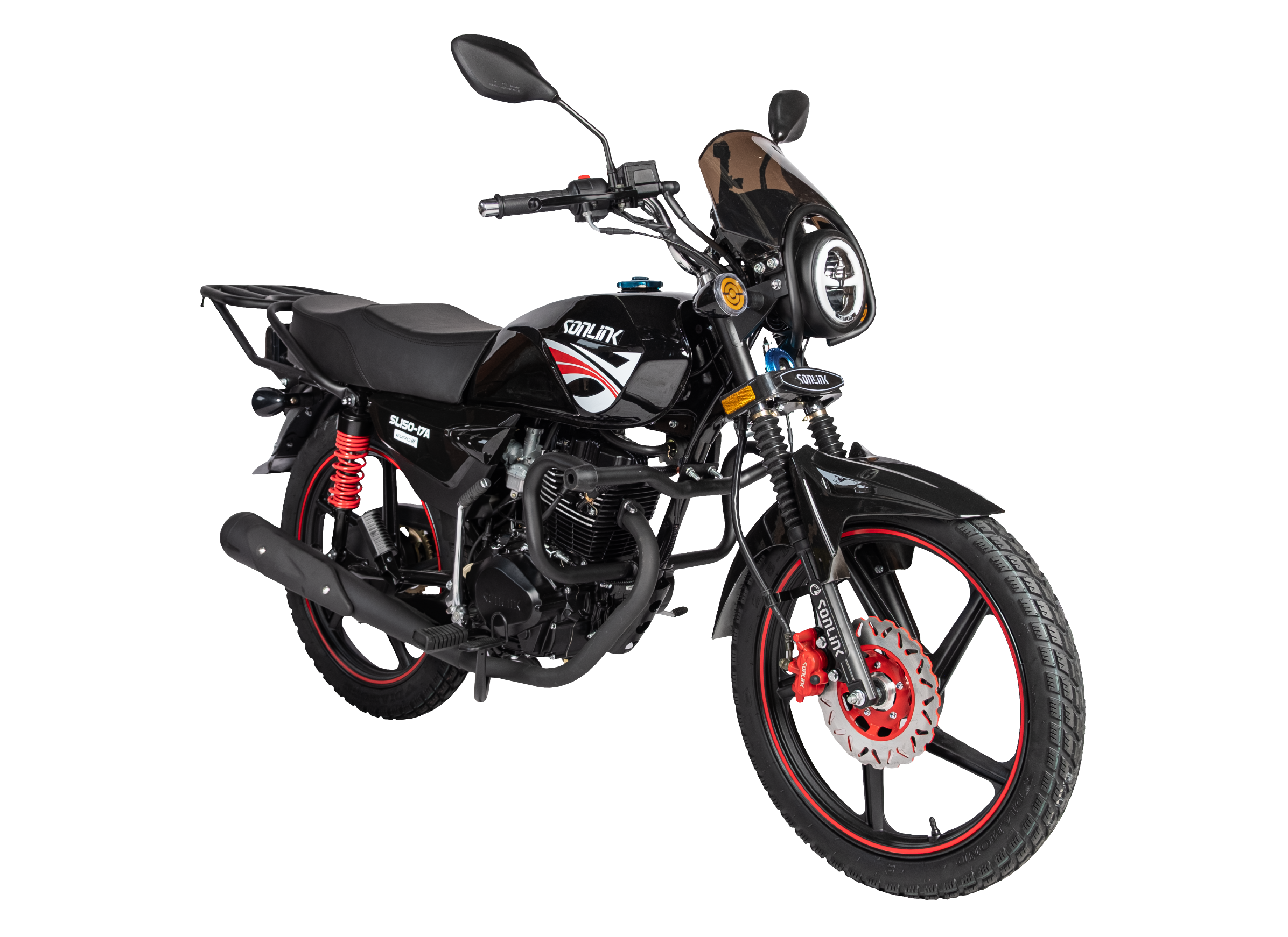 La Sonlink SL150-17A es la moto de trabajo que combina eficiencia, diseño moderno y potencia confiable para quienes necesitan una máquina que rinda todos los días. Con su motor de 150cc y una potencia de 12.5 HP, esta guerrera urbana está lista para el movimiento constante, ya sea en ciudad o trochas ligeras. Viene equipada con tablero digital, faro LED moderno, freno de disco delantero, slider de fábrica, encendido a control remoto y parrilla ampliada. ¡Una moto completa, sin excusas!